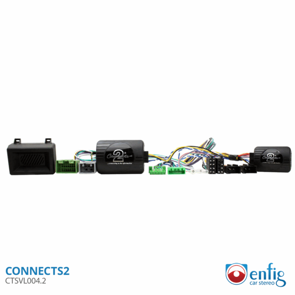 The CTSVL004.2 is a Steering Wheel Control Interface and radio wiring harness for 2004-2014 Volvo XC90 vehicles with MOST Fiber optic systems. It allows the retention of the OEM Steering Wheel Controls when installing an aftermarket radio.