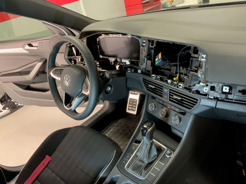 - Volkswagen Taos 2022-2025 We have been told the radio brain is behind the screen. The amp will fit but is very tight.