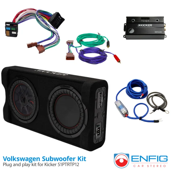 Our plug and play subwoofer upgrade for the Volkswagen base audio system is the easiest way to do a subwoofer upgrade. We provide everything needed to perform a plug and play installation without cutting a single wire.